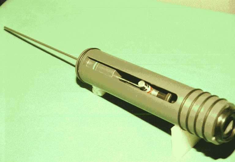 at the proximal end. A distance piece, gliding over the jacket tube centres